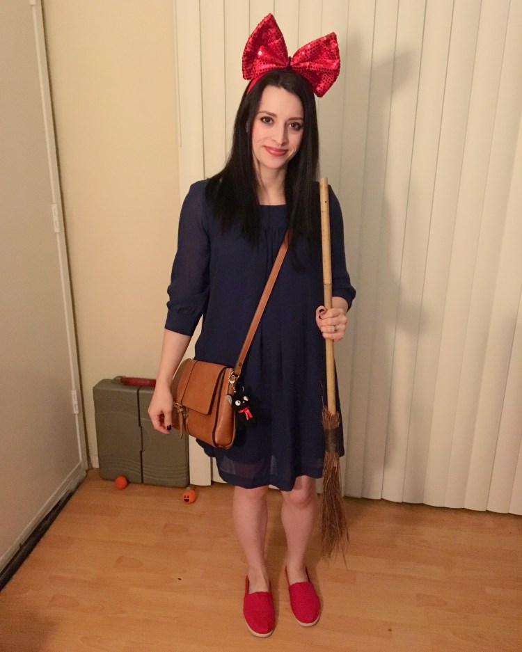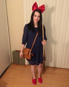 I usually dress up as a couple things every year for Halloween because I’m just so indecisive… Kiki came to mind because it’s a simple and classic costume. Who doesn’t love Studio Ghibli movies (Spirited Away, Princess Mononoke, Grave of the Fireflies, My Neighbor Totoro, etc)?! So I made a trip to the Goodwill, found this blue dress. Made a stop at Rite Aide, found the shoes. And lastly, went to Party City for the bow and broom. The costume was under $20!